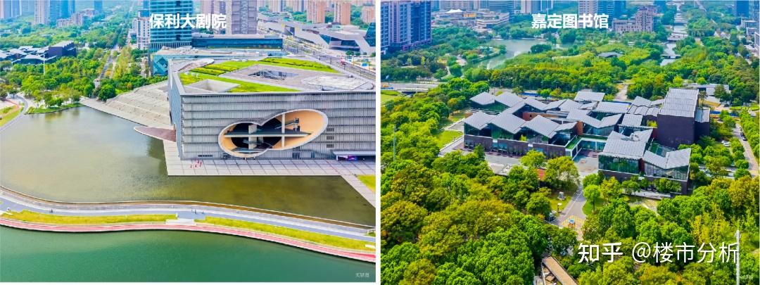 上海市民体育公园、上海嘉北郊野公园、紫气东来公园,上海保利大剧院、嘉定图书馆、嘉定区文化馆