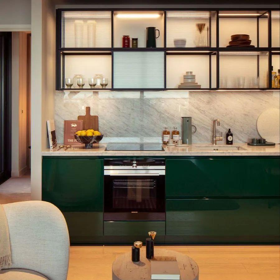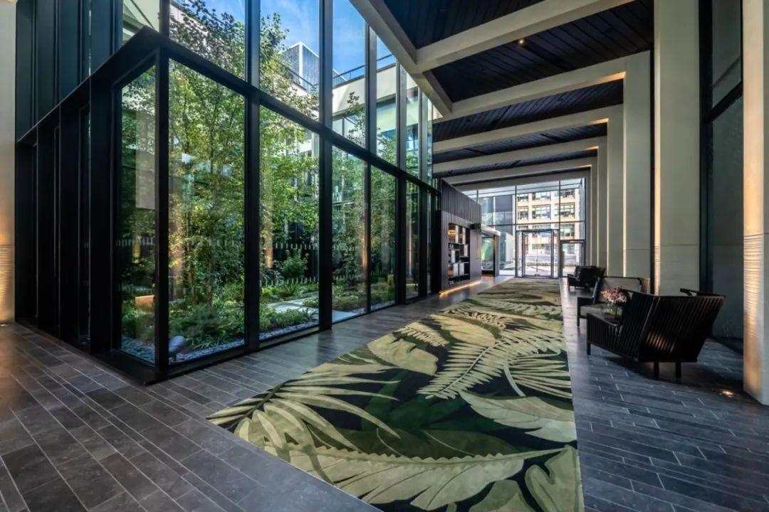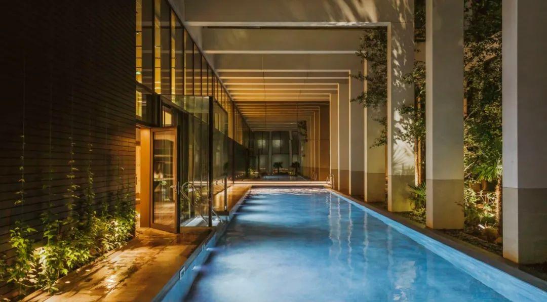 项目提供恒温游泳池、宽屏迷你影院、惬意的53楼天空休闲吧、可眺望景观的健身房等。公共空间里,阳光折射在室内空间的100种特意栽培的异域植物上,光影互动流转,每分钟都潋滟出不同光景。