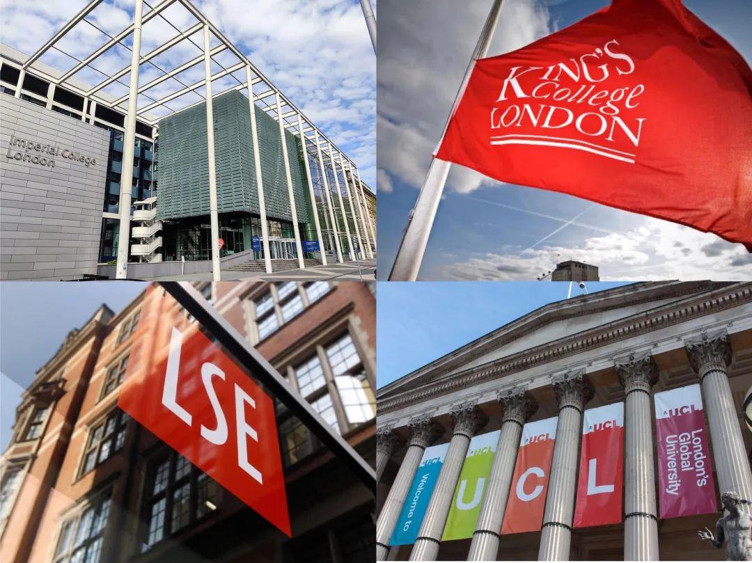 伦敦大学学院UCL、伦敦K ing's College的三大校区、伦敦政治经济学院LSE、帝国理工学院IC、伦敦艺术大学UAL的三大校区、