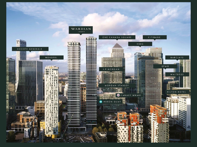 位于伦敦新金融城金丝雀码头,邮编E14,正对着投行摩根斯坦利,下楼就是水景和地铁站,离几大金丝雀码头的购物商圈也仅步行可达。豪华生活,触手可及。