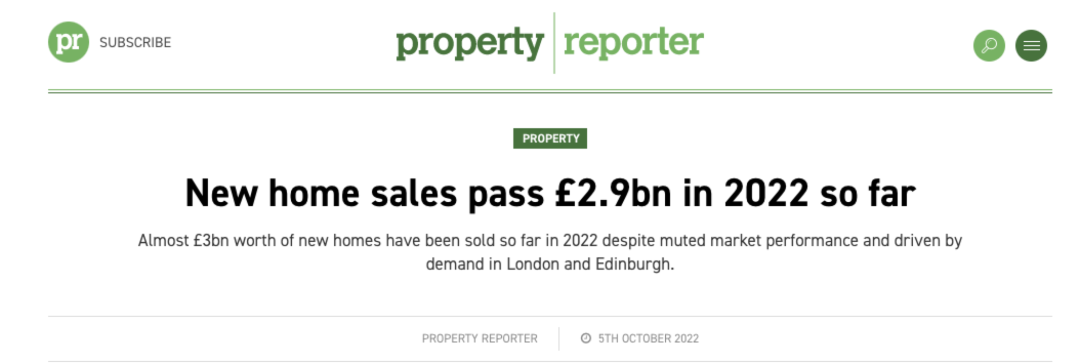 ,到2022年开年迄今,英国新建房屋的总销售额已超过了29亿英镑。
