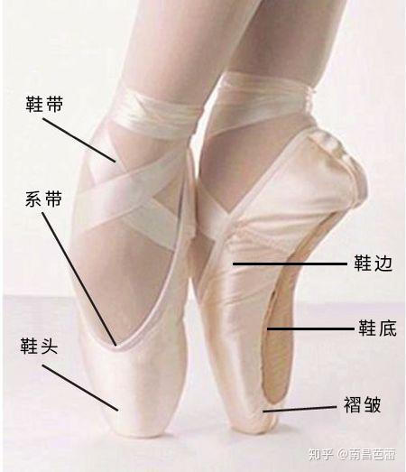足尖鞋不同于普通的软底练功鞋,它是一种特制舞蹈鞋,前部由特殊的胶水把布一层一层的粘起来并打实,形成一个硬硬的头(Box),并且在前端有一个小小的平面(Platform);而鞋底内有一块橡胶鞋板(Shank),鞋底外有一块皮质底(Leather Sole)。芭蕾舞女演员就是靠鞋板的帮助立起来,并利用鞋头的小平面固定重心的。