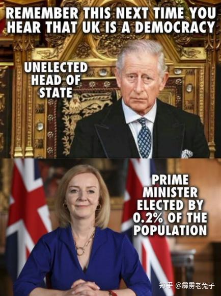 当你听到英国是个民主国家时请记住:1、这里的国王不是民选的。2、能决定首相人选的只占总人口的0.2%