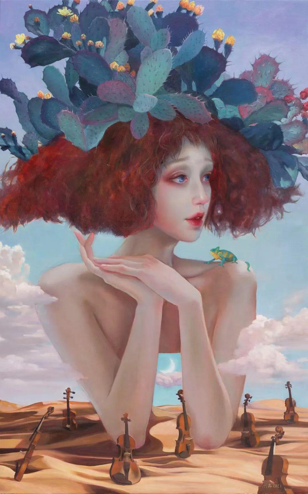 在潮流文化、元宇宙席卷的今日,画家作品素材来源已经不局限于现实生活,波普艺术的流行也意味着快消费式直观艺术形式表达占据重要市场地位,我们感受世界的视角已经不能单纯的从单一维度去考量,画家各自塑造作品世界展现给观众,观众可以恰是对口喜爱的接受,也可以自取受用价值,在这里我们不深究内在原因,更多以鼓励的方式解锁思考的力量。