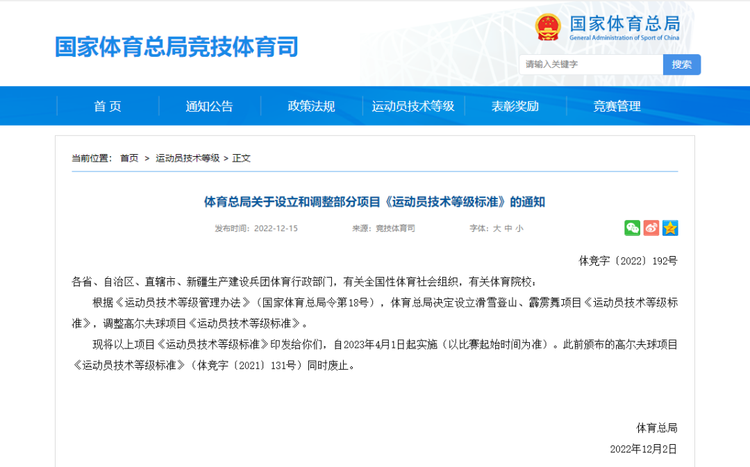 国家体育总局设立霹雳舞项目《运动员技术等级标准》,2023年4月1日即将实施。参加哪些赛事获得名次可以申请国家级运动员呢,我们一起来看一下。(来源:国家体育总局)
