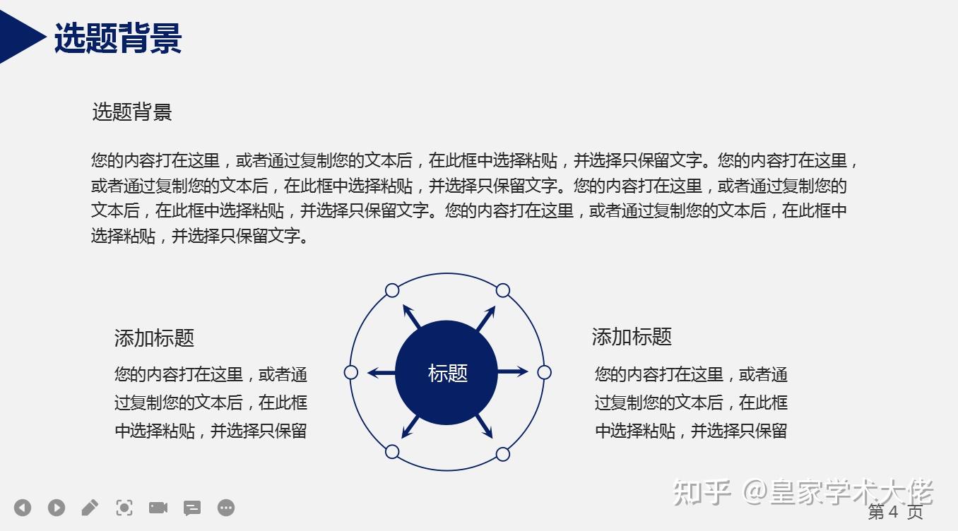 例如:近年来,……(行业现状)。因此,在……(行业压力)日益严峻的排战下,发展……(研究内容)极其重要。研究内容)是……(行业)的重要组成部分,如果无法解决这个问题将直接影响到……(行业)的发展。因此,本文将从……出发,在分析……(研究对象)的基础上,从……方面研出……(问题),进而提出……相应建议对策,促进……(行业)发展。