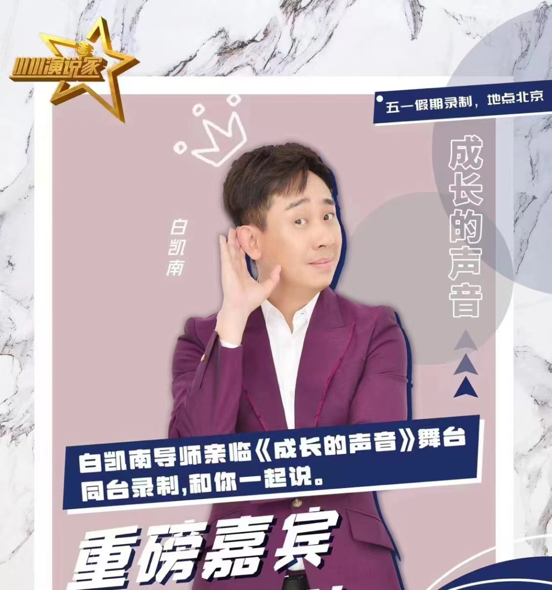 小小演说家成长的声音选手招募时间:2023年4月30号-5月1号录制录制地点:国家中影数字制作基地(北京怀柔)播出平台:中国教育电视台2套播出,央视频、爱奇艺播出 同台嘉宾:著名相声演员白凯南、《爱笑会议室》主持人李波儿本次活动包含孩子个人采访,红毯,央视主持人见面会,导演组指导,正式录制回报:电子版邀请函官方证书:小小演说家证书(证书参考下图)各环节高清剧照