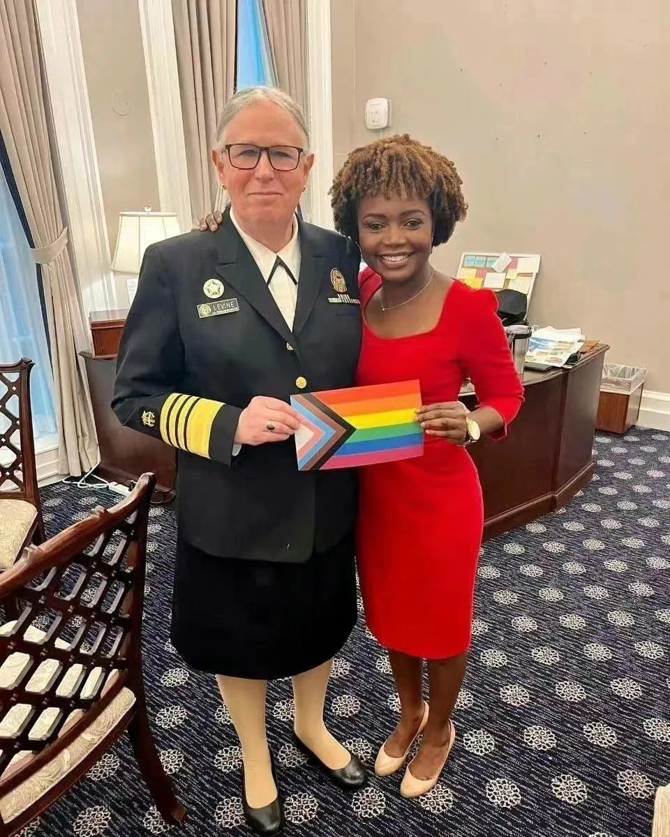 还有下图中左边这位,她是个变性人,虽然一次仗没打过,但是却被提拔为美国四星上将兼卫生部长。