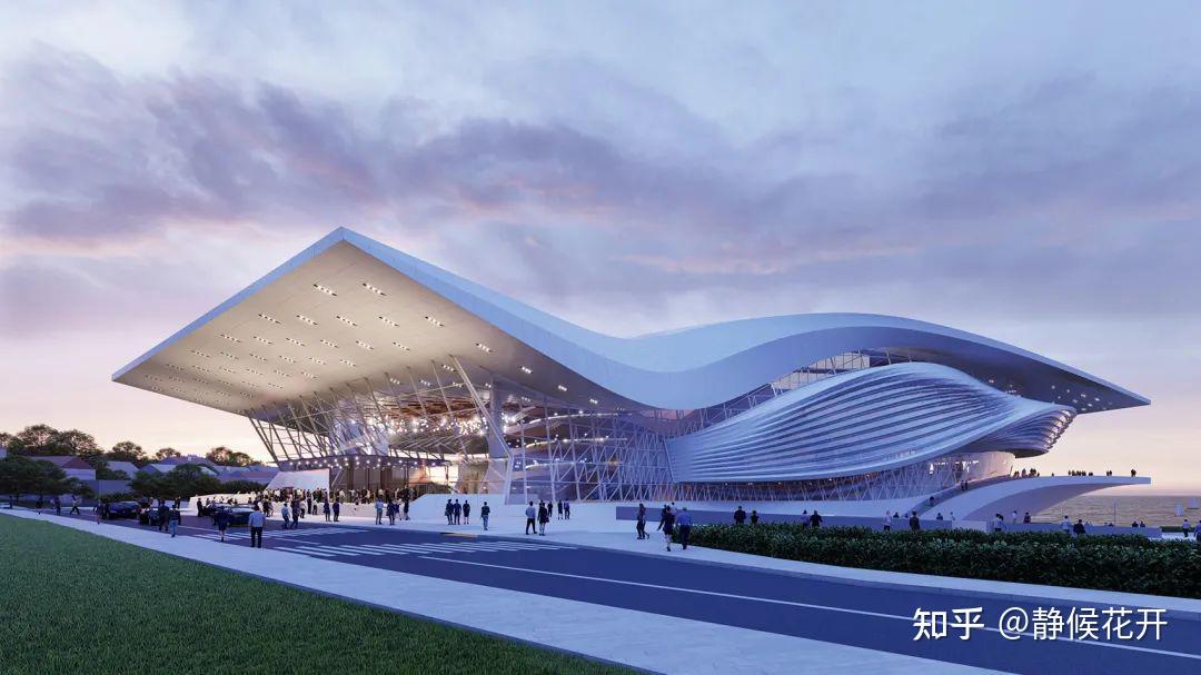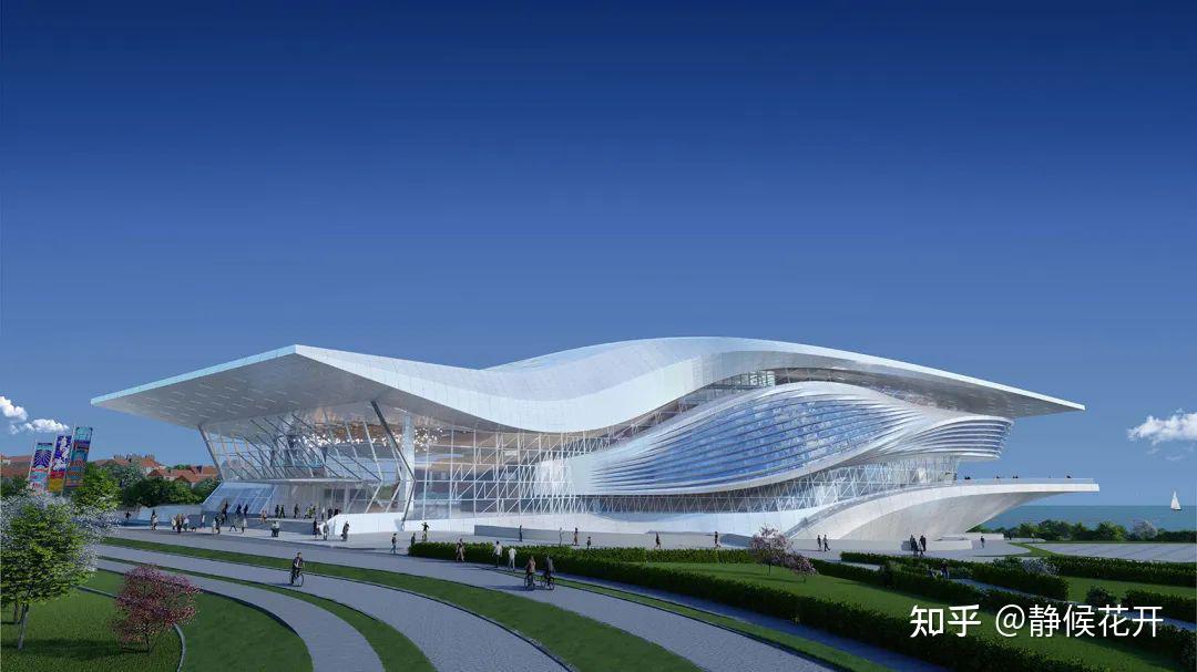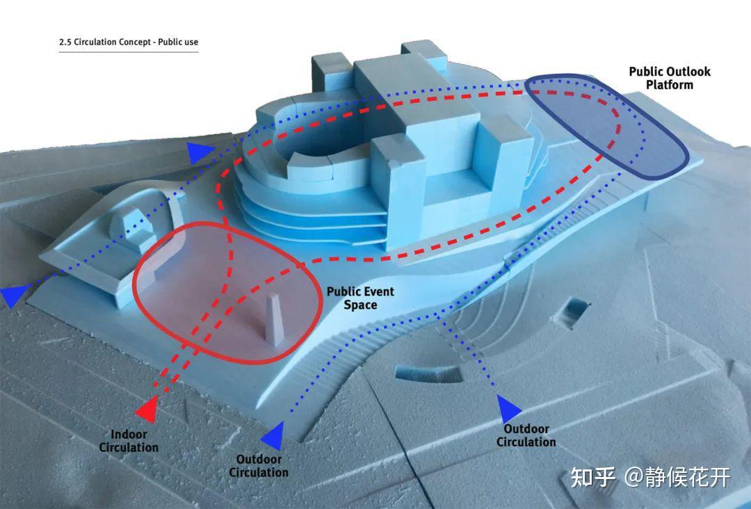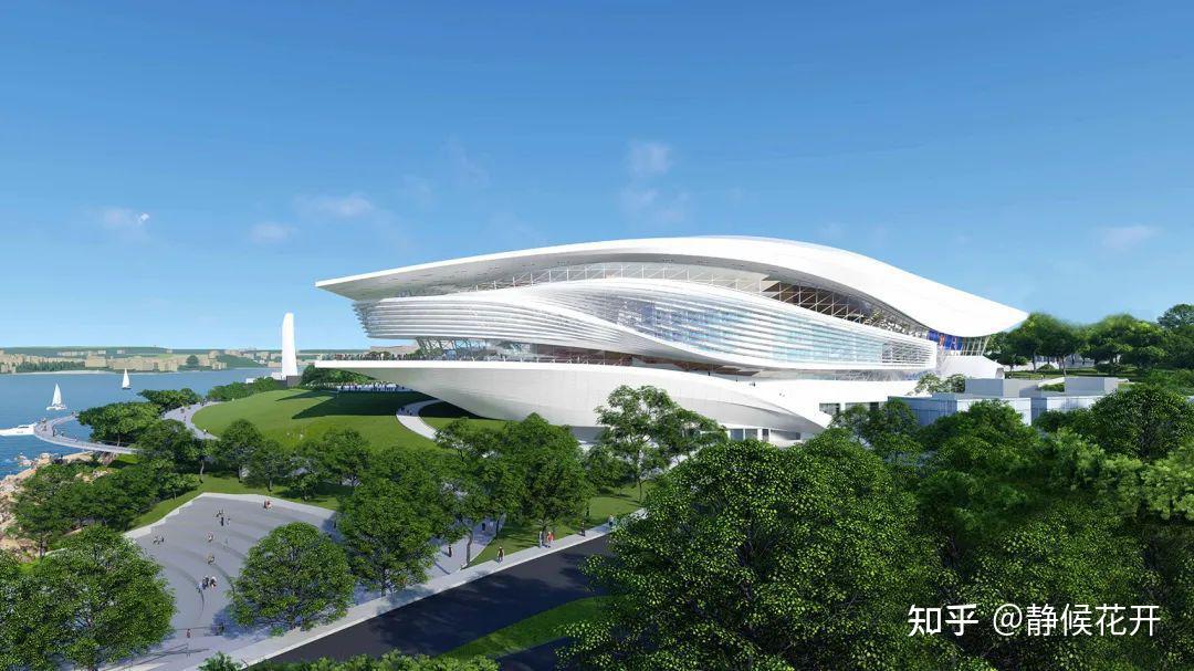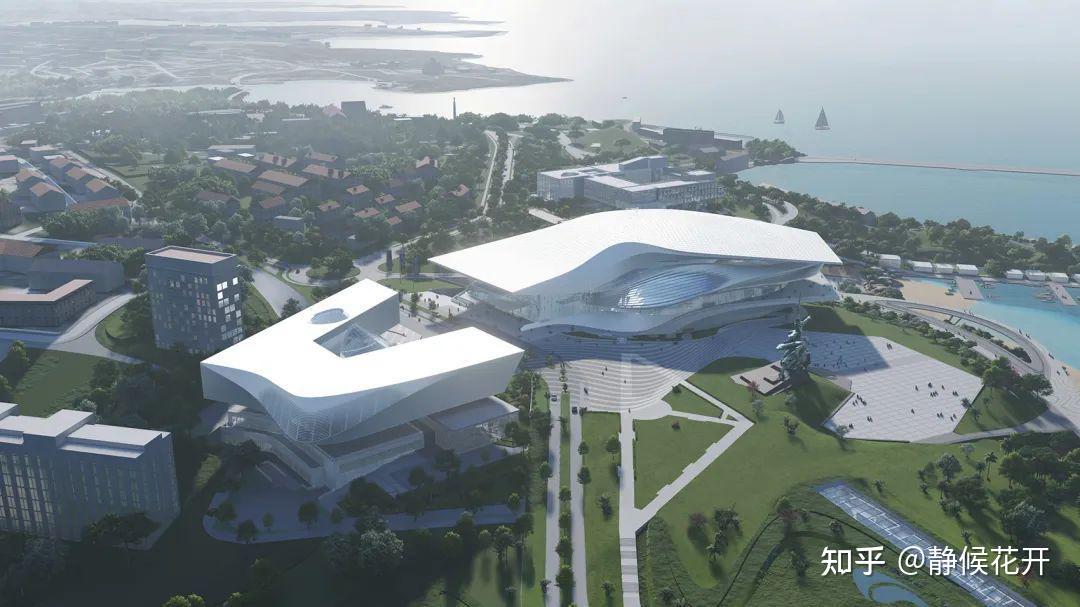 ▲建筑的底层基座延伸向海湾