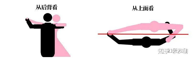 从顶部看,女士的肩膀应该与男士的肩膀平行(见上图)。