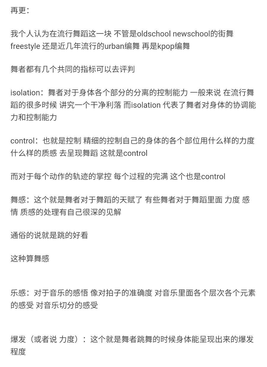 上面这些 是我理解的 流行舞通用的可以去评判的一个点